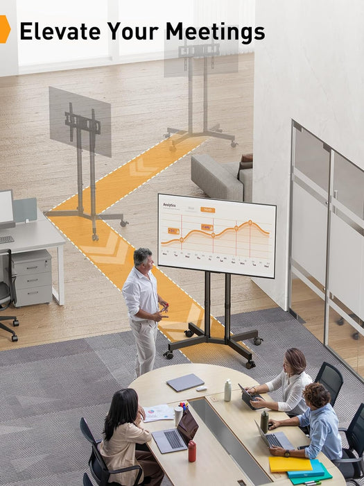 Transform your space with ease. From living rooms to meeting areas, this rolling TV stand delivers a dependable, stylish foundation for your entertainment and presentations—making it simple to create the exact mood you want in minutes.