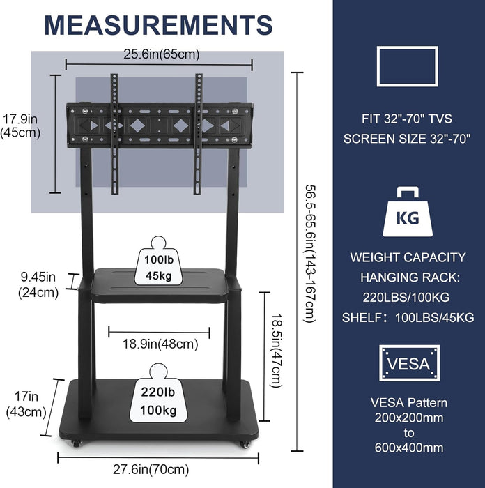 - Stable Construction: Crafted from premium materials to support large TVs while staying steady during movement.
