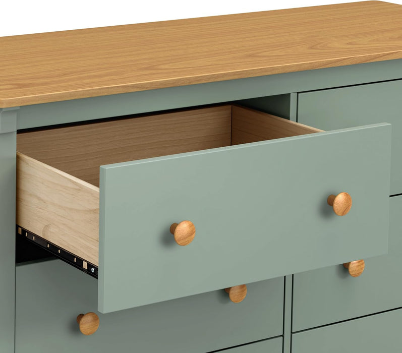 Storage that grows with your family—the Shea 6-Drawer Dresser in Light Sage and Honey is designed to handle baby clothes today and big-kid drawers tomorrow.