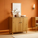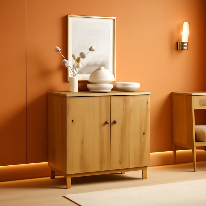 • Expansive storage: Two doors open to three internal compartments, keeping dishes, linens, or everyday essentials neatly organized and out of sight.