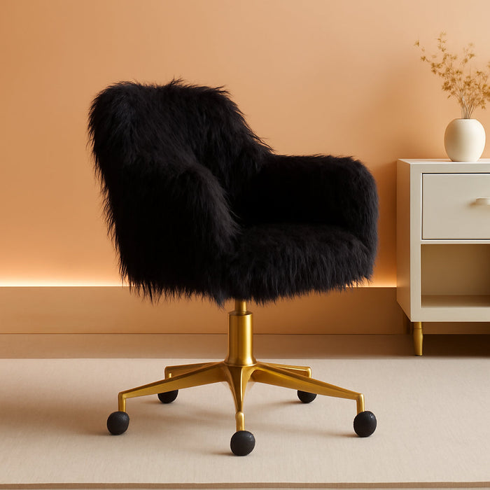 Elevate your workspace with the Soft Faux Fur Swivel Chair for Home Office — plush comfort meets modern design. This mid-back desk chair envelops you in soft faux fur while delivering practical features that make work or study feel effortlessly luxurious.
