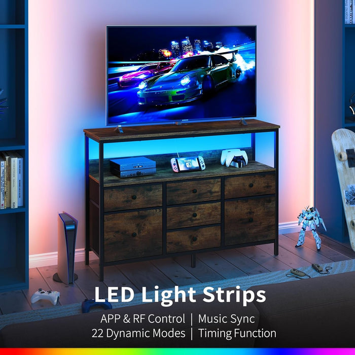 LED TV Stand With 7 Fabric Drawers And Charging Station