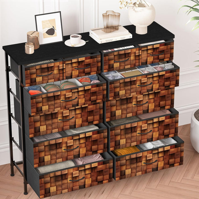 Durable, easy-care construction — a sturdy steel frame supports a waterproof wooden countertop, while wear‑resistant fabric drawers keep contents protected and looking fresh. The top surface is effortless to clean, so your dresser stays stylish with minimal upkeep.