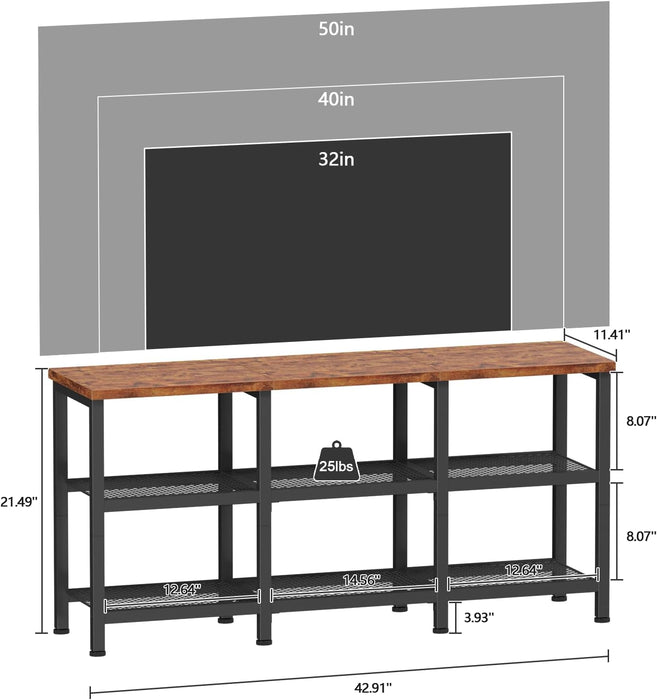 Rustic Brown TV Stand With 3 Tier Storage For 50 Inch TVs