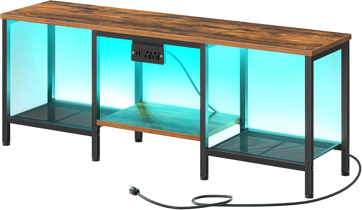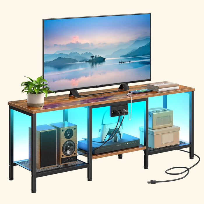 Transform your living room with a rustic LED TV stand that combines vintage warmth with modern charging convenience. Designed for TVs up to 55 inches, this media console offers generous storage and a striking wood-grain finish paired with a matte black metal frame for lasting style.