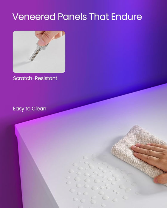 - Durable & Easy to Clean: Built from scratch-resistant particleboard and tempered glass that stand up to daily use. Wipe clean with a damp cloth to maintain its pristine look.