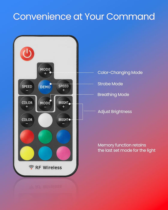 - LED Light Strip: 21 colors and 3 dynamic modes to tailor the mood for any scene (remote included).