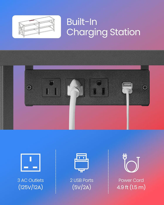 - Built-In Charging Station: 3 AC outlets, 2 USB ports, and a 4.9 ft power cable keep your TV, console, and speakers powered from one location.