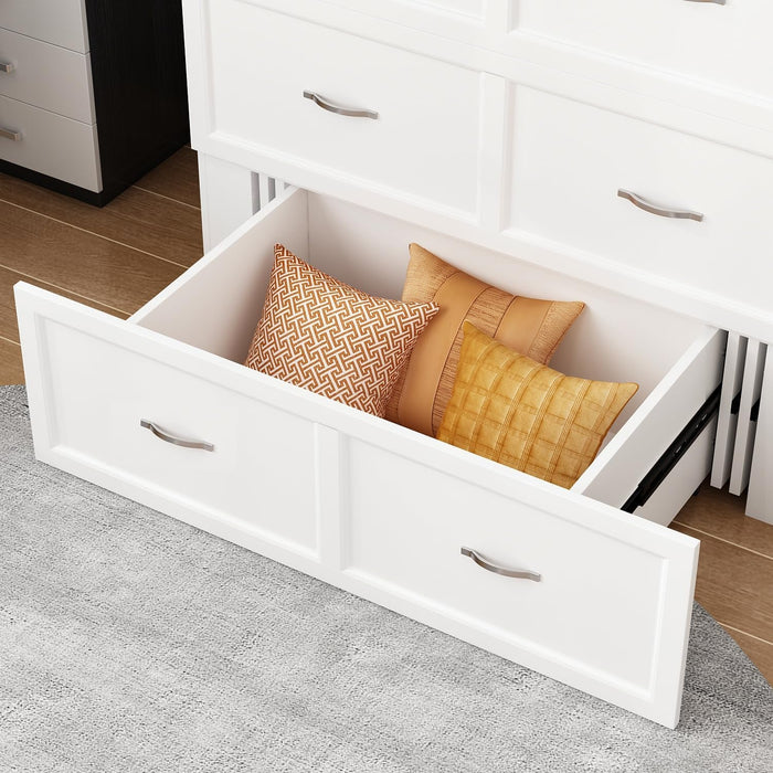- Large drawer + top cabinet provide ample space for linens, clothes, or accessories.
