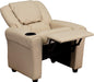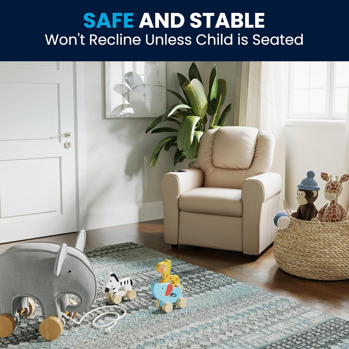 Beige Kids Recliner With Cup Holder For Cozy Seating