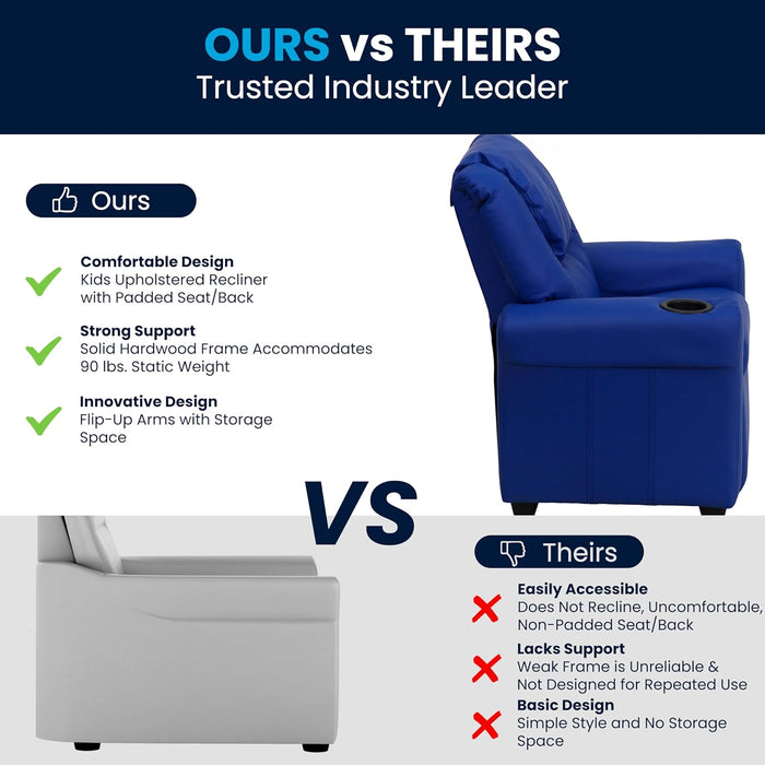 Vana Vinyl Kids Recliner Blue With Cup Holder And Headrest
