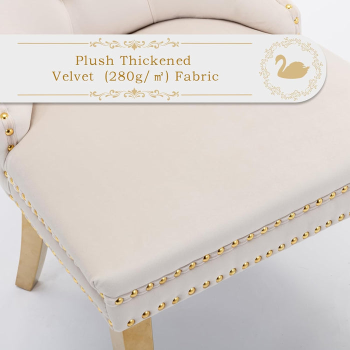 Designed to fit both modern and traditional spaces, these velvet dining chairs pair beautifully with a variety of dining tables and decor. Their versatile beige fabric and gold-plated legs create an inviting atmosphere for family dinners, entertaining guests, or everyday meals, turning your seating into a statement of comfort and style.