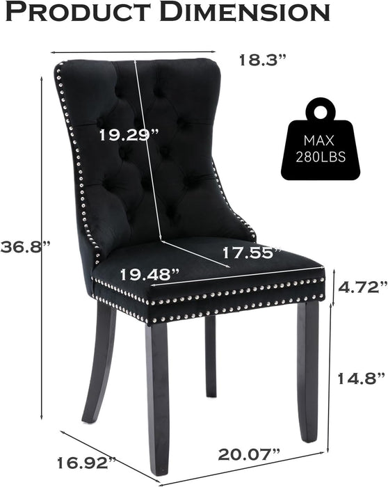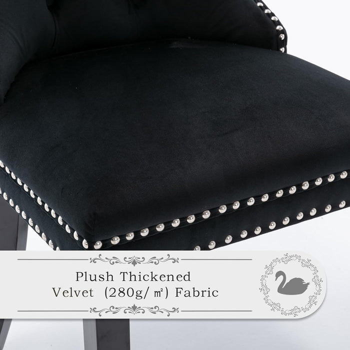 Black Velvet Dining Chairs Set Of 4 With Nailhead Trim