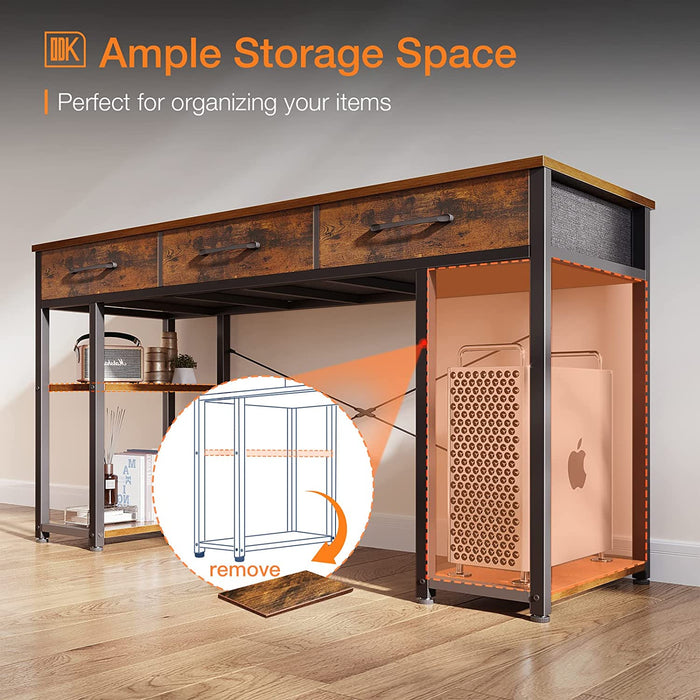 Desk with 3 Drawers And Wood Storage Shelves