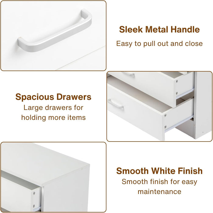 White 3 Drawer Dresser For Bedroom Modern Wooden Storage Chest