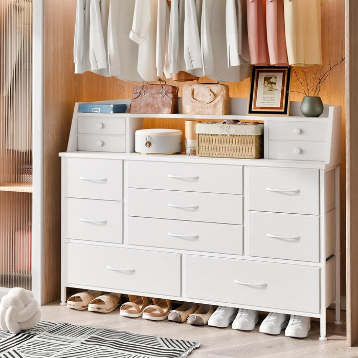 Transform clutter into calm with a stylish white fabric dresser featuring 13 drawers. Designed to blend modern aesthetics with practical storage, this white dresser is perfect for bedrooms, nurseries, living rooms, and entryways.