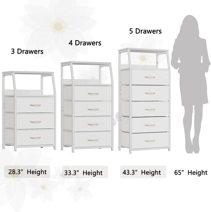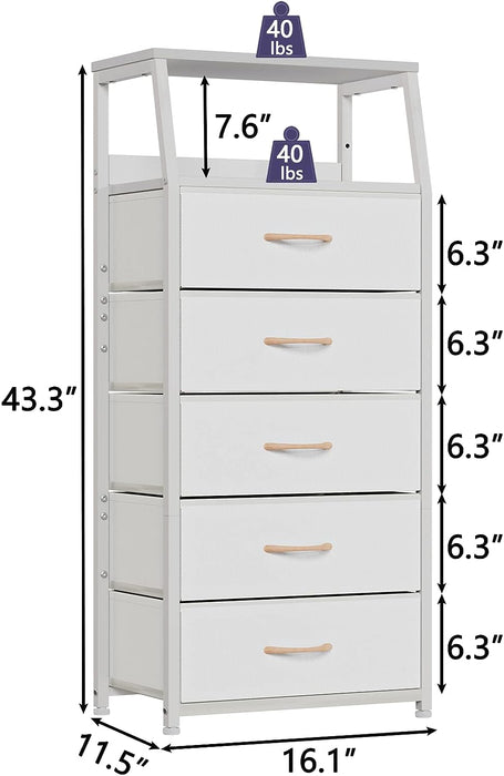 Refresh your space with a compact, high-capacity dresser that blends clean design with everyday practicality. The white dresser with 5 fabric drawers provides versatile storage for bedrooms, entryways, nurseries, and beyond.
