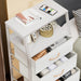 - Five fabric drawers—large capacity for clothes, toys, socks, scarves, and accessories; PVC fabric is lightweight, durable, and kid-friendly.