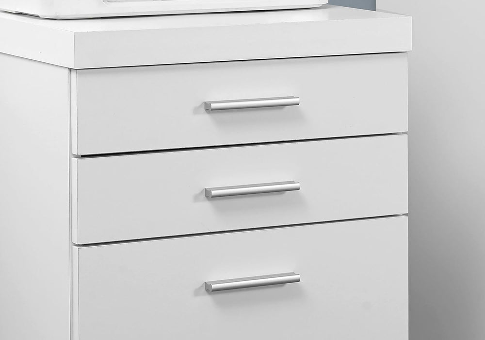 White Hollow Core 3 Drawer File Cabinet On Castors