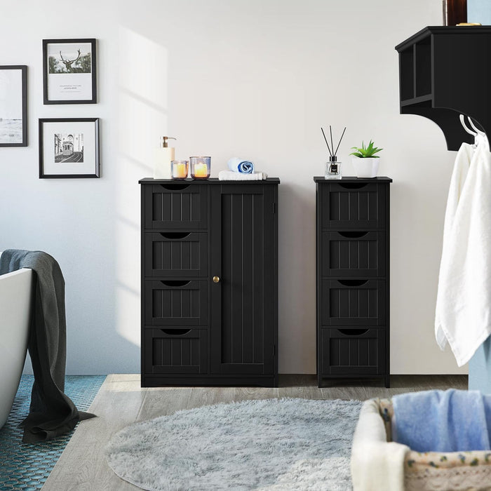 Wooden Bathroom Floor Storage Cabinet With 4 Drawers And Cupboard Freestanding
