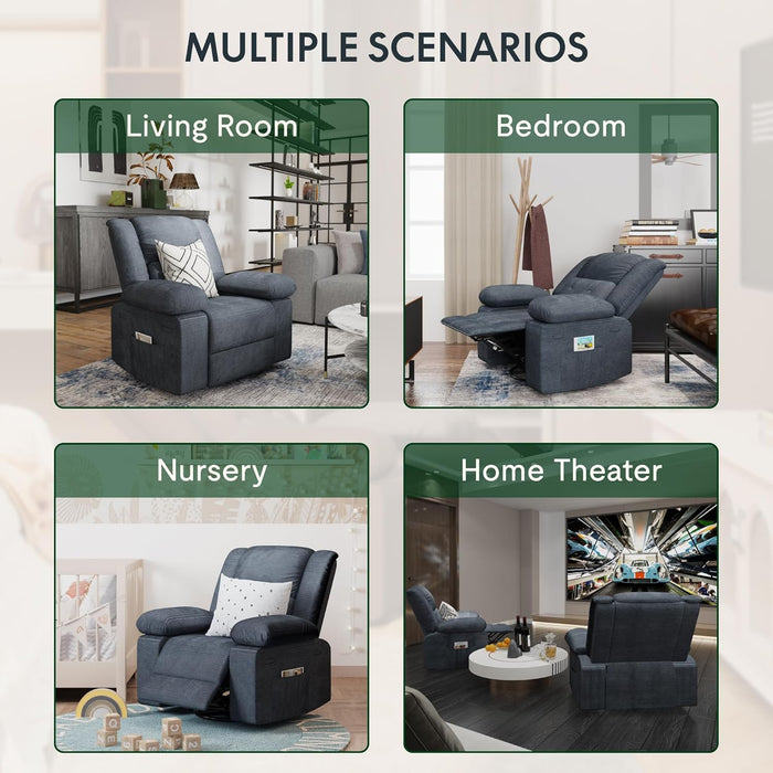 Grey Massage Rocker Recliner With Heat 270 Degree Swivel